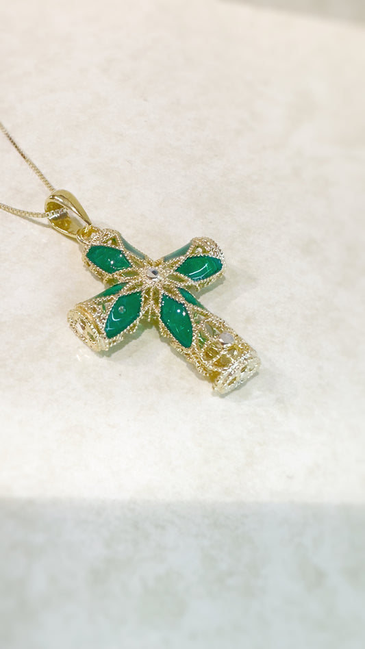 Collana in Argento 925% con Malachite e Zirconi bianchi